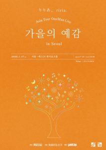 りりあ。が、初めてのソウル公演となる Asia Tour OneMan Live「秋の予兆」(現地タイトル:riria. Asia Tour OneMan Live 「가을의 예감」 in Seoul)をソウル・YES24 WANDERLOCH HALL にて、2026年 1 月 17 日(土)に開 催することが決定しました!